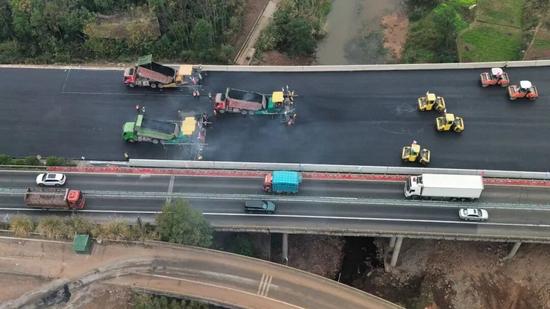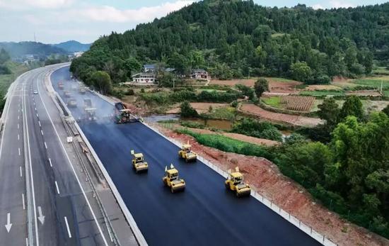 ▲成南高速擴(kuò)容工程項(xiàng)目路面鋪設(shè)現(xiàn)場。