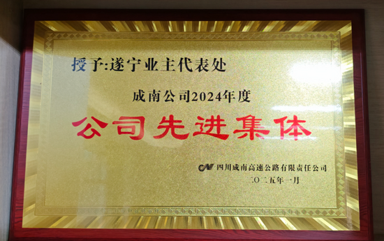 ▲遂寧業(yè)主代表處榮獲四川成南高速公路有限責(zé)任公司2024年度“公司先進(jìn)集體”榮譽(yù)稱號。