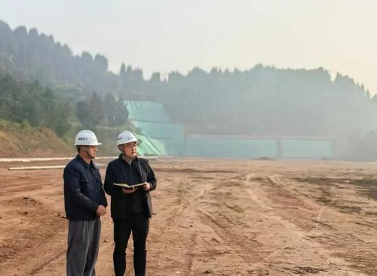 遂寧業(yè)主代表處管段工程師唐磊與施工單位生產(chǎn)經(jīng)理馮志新一起現(xiàn)場踏勘村民出行通道。