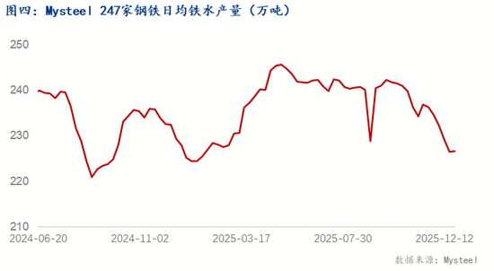 這一現(xiàn)象主要源于四季度國內(nèi)鋼廠利潤收縮疊加年末高爐常規(guī)檢修增加,導(dǎo)致鐵水產(chǎn)量持續(xù)回落。截至四季度末,Mysteel247家鋼廠日均鐵水產(chǎn)量已降至226.58萬噸,較三季度末下降6.51%,整體上抑制了部分超特粉的消耗。