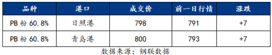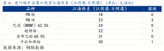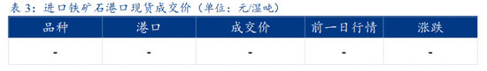 表2:進(jìn)口鐵礦石港口現(xiàn)貨成交價(單位:元/濕噸)