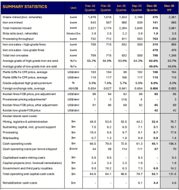 報告顯示,公司整體銷售態(tài)勢良好,庫蘭島(Koolan Island)鐵礦在季度內(nèi)因巖層局部移位曾短暫調(diào)整開采計劃,目前運營已有序轉(zhuǎn)向庫存加工與銷售,整體影響有限。具體來看: