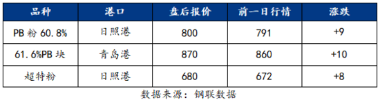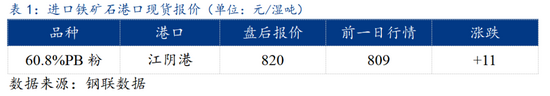 表1:進(jìn)口鐵礦石港口現(xiàn)貨報價(單位:元/濕噸)