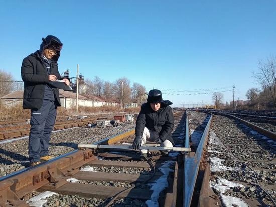 鐵運(yùn)分公司生產(chǎn)保障工區(qū)職工在靈南調(diào)車(chē)場(chǎng)點(diǎn)檢鐵路線路,確保鋼鐵運(yùn)輸“大動(dòng)脈”安全暢通。