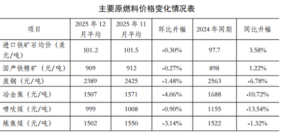 主要原燃料平均價格環(huán)比均下降從原燃料來看,與11月相比,主要原燃料各品種平均價格均下降。其中,冶金焦降幅較大,為4.06%,國產(chǎn)鐵精礦降幅較小,為0.27%。整體看,原燃料對鋼價的支撐作用有所減弱。(見下表)