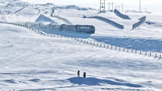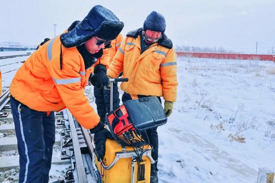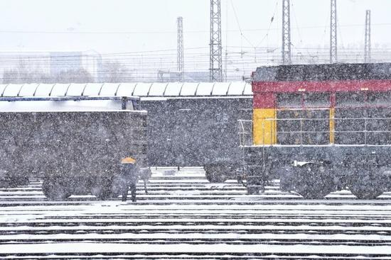 吹雪機轟鳴著將鋼軌縫隙里