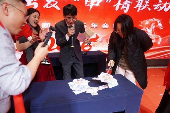 年會(huì)現(xiàn)場(chǎng)始終洋溢著歡聲笑語。精彩節(jié)目間穿插的互動(dòng)游戲迅速點(diǎn)燃了全員熱情,隨后的抽獎(jiǎng)環(huán)節(jié)更是扣人心弦,驚喜連連、歡呼不斷。領(lǐng)導(dǎo)派發(fā)的微信紅包同步點(diǎn)燃線上線下,隨著手機(jī)屏幕閃爍,一份份祝福在云端傳遞,歡笑交織,更顯公司大家庭的溫暖活力。這些精彩互動(dòng)環(huán)節(jié),不僅拉近了彼此距離,更讓歡樂與祝福深入人心。