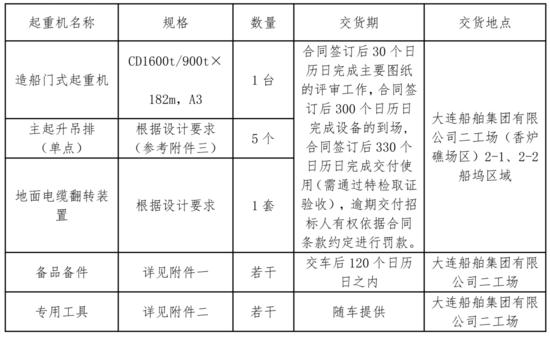 本招標項目1600t造船門式起重機招標人為大連船舶重工集團有限公司,招標項目資金來自自籌。項目已具備招標條件,現(xiàn)進行公開招標,特邀請有興趣的潛在投標人(以下簡稱申請人)提出資格預審申請。
