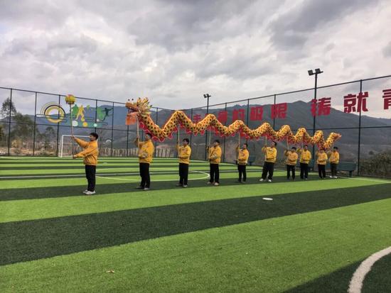 2025年4月,八渡路橋“青工班”在八渡站區(qū)足球場籌備舞龍表演。