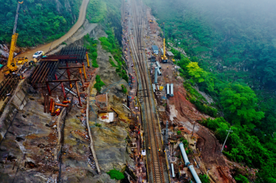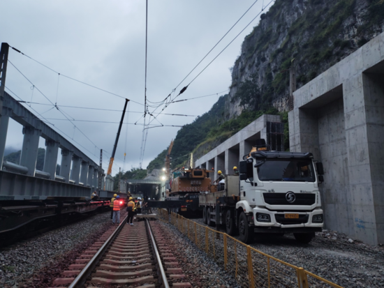 2025年9月,南昆線K411棚洞施工點正在進行吊裝作業(yè)。