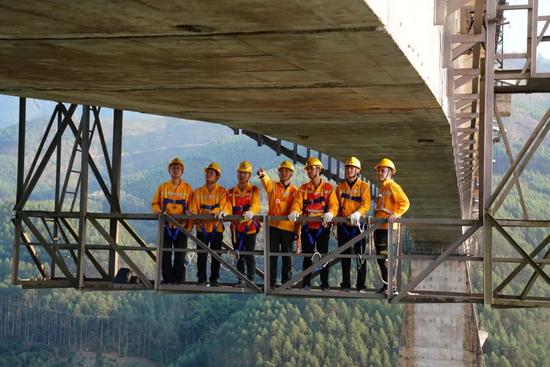 這里風景壯麗——碧綠的南盤江如一條絲帶蜿蜒而過,與穿山跨河的南昆鐵路交匯,蔚為壯觀;這里位置特殊——車間轄區(qū)橋隧占比達79%,車站位于滑坡地段,是汛期防洪的重中之重;這里環(huán)境險要——105米高的南盤江大橋連接兩省區(qū),橋身采用特殊的V形支撐結構,需要檢修人員定期維護,作業(yè)場面堪比極限運動。