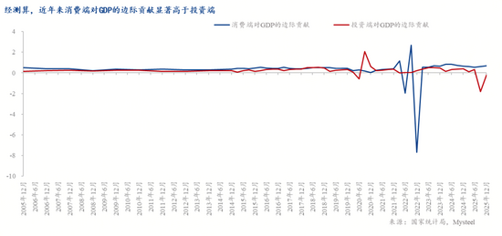 第一,宏觀政策的優(yōu)先級需要更加向“擴內(nèi)需、促消費”傾斜,這是“兩新”政策在年初就有新動向,并且未來可能持續(xù)加碼的重要原因。第二,“促消費”的優(yōu)先級擺在“擴投資”之前。經(jīng)過計算后發(fā)現(xiàn),一個非常有趣而有意義的數(shù)據(jù)現(xiàn)象是,近年來消費端對GDP的邊際貢獻度逐漸高于投資端,而且2025年消費端對GDP的邊際貢獻度平均值顯著高于2022年至2024年。這就說明,從政策投入-產(chǎn)出的“性價比”角度而言,政策資金更愿意被投入到消費端領(lǐng)域。第三,在供給端,政策需從“保量”向“提質(zhì)”和“優(yōu)結(jié)構(gòu)”深化。繼續(xù)通過“反內(nèi)卷”和統(tǒng)一大市場建設(shè),引導(dǎo)資源從低效過剩領(lǐng)域流向高技術(shù)制造業(yè)和現(xiàn)代服務(wù)業(yè),使供給結(jié)構(gòu)更好地匹配升級中的需求。第四,需加強宏觀政策的系統(tǒng)性和協(xié)同性。財政、貨幣、產(chǎn)業(yè)、就業(yè)等政策應(yīng)形成合力,既要通過逆周期調(diào)節(jié)穩(wěn)定總需求,防止經(jīng)濟失速,更要通過跨周期設(shè)計,著力解決收入分配、社會保障等深層次問題,從根本上扭轉(zhuǎn)“供強需弱”的失衡局面,推動經(jīng)濟實現(xiàn)質(zhì)的有效提升和量的合理增長。
