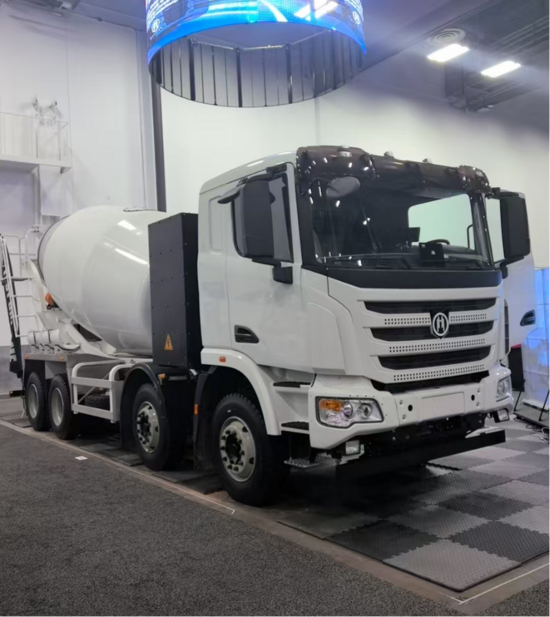 據(jù)現(xiàn)場工作人員介紹,該車在輕量化、動力系統(tǒng)及能耗控制方面表現(xiàn)突出。通過車架、車橋、電池等系統(tǒng)采用新工藝與新材料,整車自重處于行業(yè)領(lǐng)先水平,在保證結(jié)構(gòu)強度的同時實現(xiàn)運載力提升。動力方面,車輛搭載綠控全新1.5代高效驅(qū)動電機,峰值功率達420kW,動力總成最大輸出扭矩超過20000N·m,電機效率高達95%以上,為混凝土運輸提供強勁而平穩(wěn)的動力支持。