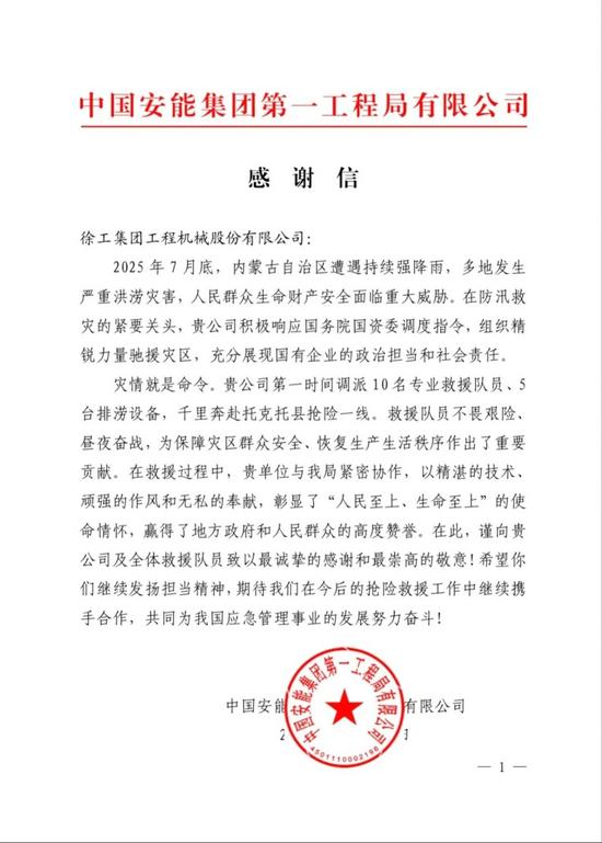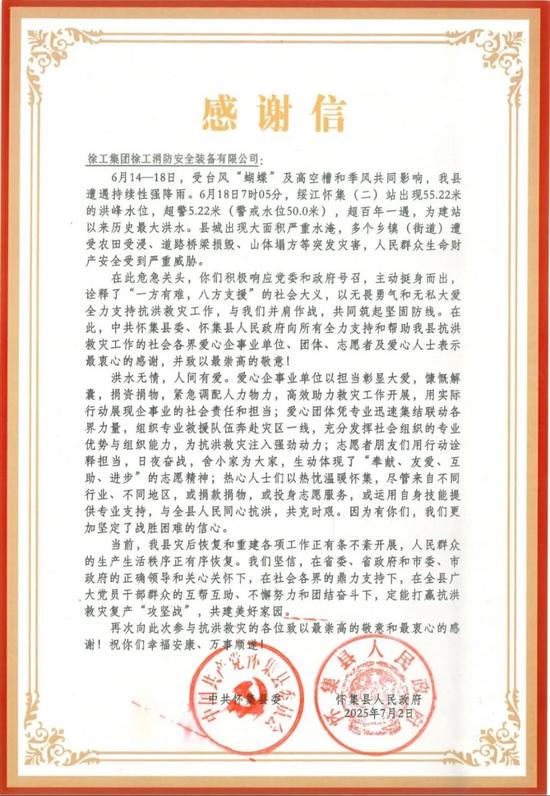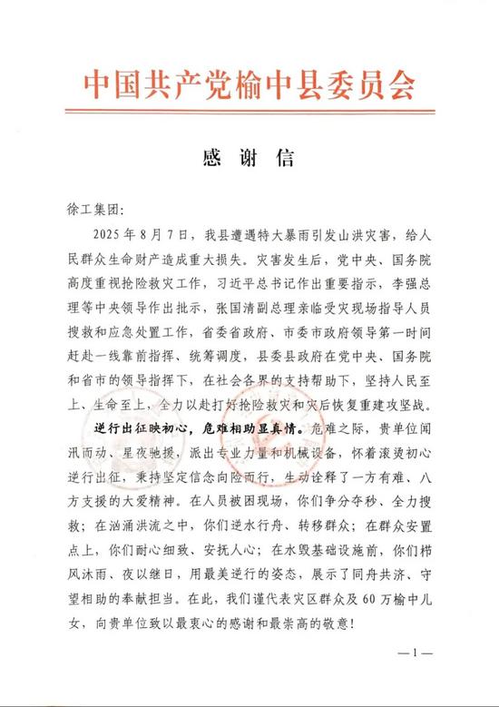 2025年8月,榆中縣遭遇特大暴雨,引發(fā)山洪災(zāi)害。徐工應(yīng)急救援隊(duì)聞汛而動,星夜馳援,派出專業(yè)力量和機(jī)械設(shè)備逆行出征。有力保障了人民群眾生命財(cái)產(chǎn)安全,彰顯了企業(yè)與地方共克時艱的深厚情誼。