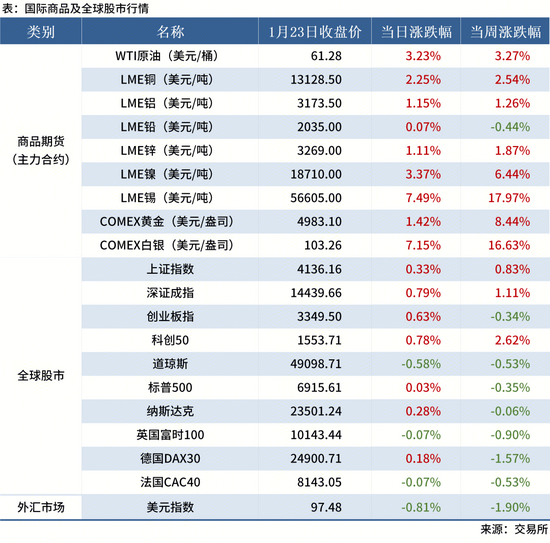宏觀資訊2025年我國GDP同比增長5.0%,首破140萬億元,達到140.19萬億元;央行行長潘功勝表示,2026年將繼續(xù)實施好適度寬松的貨幣政策,降準降息還有一定的空間;2026年至2030年擴大內(nèi)需戰(zhàn)略實施方案醞釀出臺;財政金融協(xié)同促內(nèi)需一攬子政策出爐;2025年中國粗鋼產(chǎn)量96081萬噸,同比下降4.4%;美國宣布對與伊朗相關(guān)實體及油輪實施新一輪制裁;特朗普稱不會實施原定于2月1日生效、對歐洲8國加征關(guān)稅的措施;美國截至2026年1月17日當周初請失業(yè)金人數(shù)為?20萬人?,低于市場預(yù)期的21萬人。