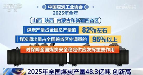 記者從中國煤炭工業(yè)協(xié)會了解到,作為能源保供“壓艙石”,煤炭供應(yīng)在生產(chǎn)端依托政策引導(dǎo)與產(chǎn)能釋放實現(xiàn)穩(wěn)定輸出,2025年全年全國規(guī)模以上煤炭產(chǎn)量創(chuàng)歷史新高;山西、陜西、內(nèi)蒙古和新疆四省區(qū)煤炭產(chǎn)量占全國總產(chǎn)量的82%左右,四省區(qū)煤炭調(diào)出量占全國跨省區(qū)外調(diào)量的95%以上,對保障全國煤炭安全穩(wěn)定供應(yīng)發(fā)揮了重要作用。