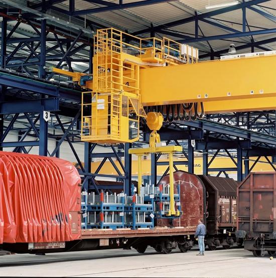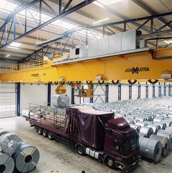 鋼卷搬運起重機(jī)通常配備有掃描儀和自動稱重裝置,用于記錄所有鋼卷數(shù)據(jù)。起重機(jī)的防撞保護(hù)及繞行控制系統(tǒng)則用以規(guī)避固定障礙物確保起重機(jī)安全地運行。位于德國沃爾夫斯堡的某汽車制造企業(yè)為其鋼卷倉儲中心選用了該類德馬格全自動起重機(jī),以保障其汽車生產(chǎn)過程的平穩(wěn)運行。