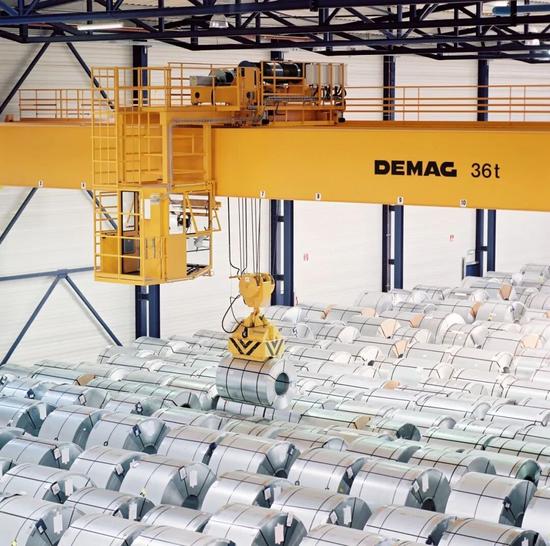 為提高鋼卷存儲與搬運作業(yè)效率,德馬格起重機(jī)可提供多種配備電磁吸盤的鋼卷搬運起重機(jī)以滿足用戶的特定需求。這些起重機(jī)可選擇性地通過無線遙控器或駕駛艙操控,也可以全自動控制。