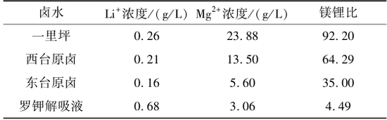 表1 不同鹵水離子含量與鎂鋰質(zhì)量比