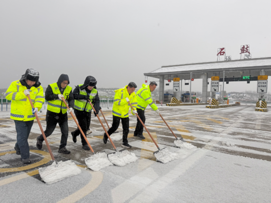 湖北交投鄂西北運營公司石鼓管理所站口除雪保暢。供圖:湖北交投鄂西北運營公司