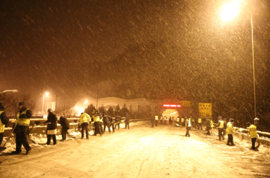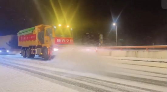 暴雪中高速人挑燈夜戰(zhàn)保暢通。供圖:陜西交控運營管理公司