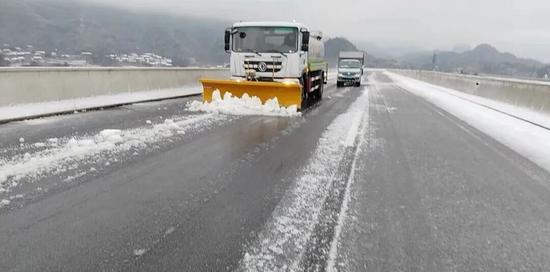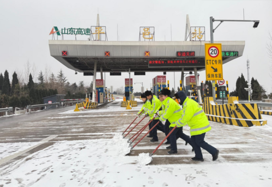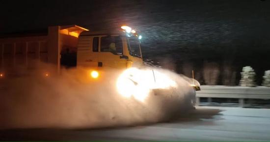 山東高速臨沂發(fā)展有限公司快速清理車道積雪。供圖:山東高速臨沂發(fā)展有限公司