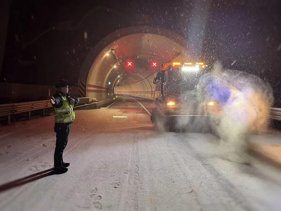 針對轄區(qū)橋隧密集、坡陡彎急的特點,制定了“機械為主、人工為輔,陡坡橋隧優(yōu)先、梯隊循環(huán)作業(yè)”的精準除雪方案。同時,主動聯(lián)合高速交警、路政部門啟動“一路三方”聯(lián)合指揮,實時共享信息,統(tǒng)一調度指令,協(xié)同制定交通管控與疏導方案,為高效協(xié)同除雪奠定了扎實基礎。