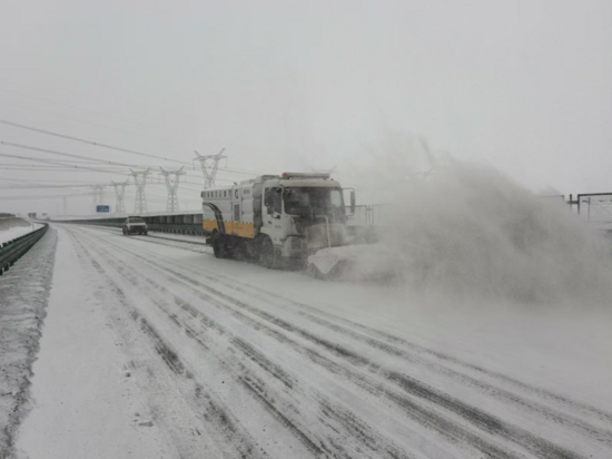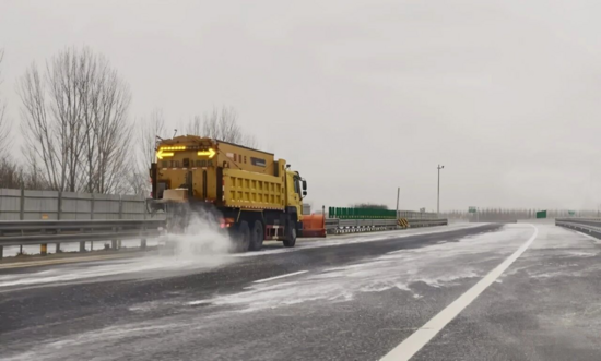 科學高效作業(yè),清除道路隱患。公路部門采用“機械為主、人工為輔”的作業(yè)模式,提升除冰除雪效率。融雪劑撒布車有序穿梭,撒布融雪劑消融冰雪;除雪刷和除雪鏟高效清掃路面積雪;人工隊伍聚焦路肩、橋面縫隙等區(qū)域,細致清理積雪、拋灑防滑料,晝夜奮戰(zhàn)、邊清邊通,持續(xù)巡回開展融雪除冰作業(yè),有序推進除雪防滑工作。