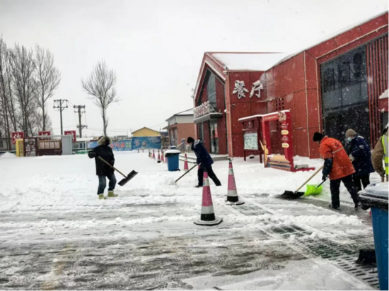 人機協(xié)同,除雪攻堅“見實效”。各服務區(qū)除雪現(xiàn)場一派熱火朝天的奮戰(zhàn)景象。養(yǎng)護工區(qū)在全力保障高速路面積雪清理的同時,專門調配平地機、鏟雪車組成專業(yè)作業(yè)梯隊,馳援服務區(qū)除雪工作。大型機械在主干道上來回穿梭,轟鳴聲中,厚重的積雪被快速推至指定區(qū)域,高效開辟出暢通無阻的安全通道。與此同時,工作人員頂風冒雪、不畏嚴寒,手持鐵鍬、推雪板、大掃帚等工具,對停車場泊位、臺階步道等機械作業(yè)盲區(qū)展開“拉網(wǎng)式”清理。遇到受困車輛,大家主動上前幫忙清理車輪積雪,并合力提供推車助力,用實干與擔當破解出行難題。全體人員秉持“雪不停、人不歇”的堅定信念,連續(xù)奮戰(zhàn)數(shù)小時,最終實現(xiàn)服務區(qū)場區(qū)、車道、停車場等關鍵區(qū)域全面恢復暢通,圓滿達成“雪停路凈、路暢人安”的既定目標。