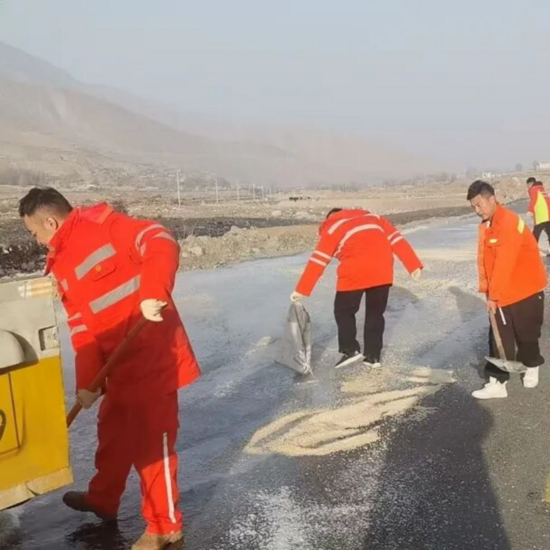 截至目前,公司累計出動抗凝保通人員860人次,投入各類機械設備152臺次,撒布融雪劑326噸、防滑砂185立方米,完成除冰除雪里程1000余公里,成功處置路面凝凍險情93起,有效保障了轄區(qū)主要交通干線的基本暢通。