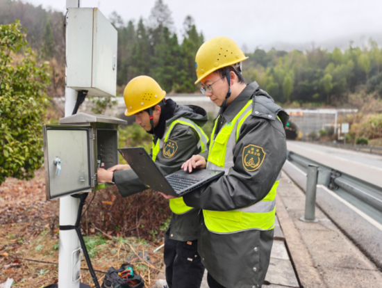 福建高速南平公司邵武機維站技術人員在邵光高速高家壟隧道口對路面溫度檢測設備開展全面“體檢”,確保設備正常運轉。張慧君 攝