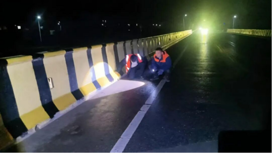 降雪如期而至,各養(yǎng)護中心立即按預案展開行動。白天,集中力量對硬路肩、中央分隔帶等區(qū)域的殘留積雪進行徹底清理,全力確保道路恢復安全暢通條件。夜間,加強重點路段巡查,利用除雪車輛照明與手持強光設備,對橋面、坡道、彎道等關鍵區(qū)域進行反復勘察與預防性處置。