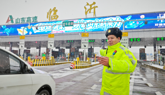 山東高速臨沂發(fā)展有限公司收費人員疏導過往車輛快速通行。供圖:山東高速臨沂發(fā)展有限公司