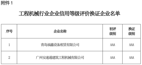 1.工程機(jī)械行業(yè)企業(yè)信用等級(jí)評(píng)價(jià)換證企業(yè)名單
