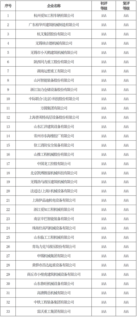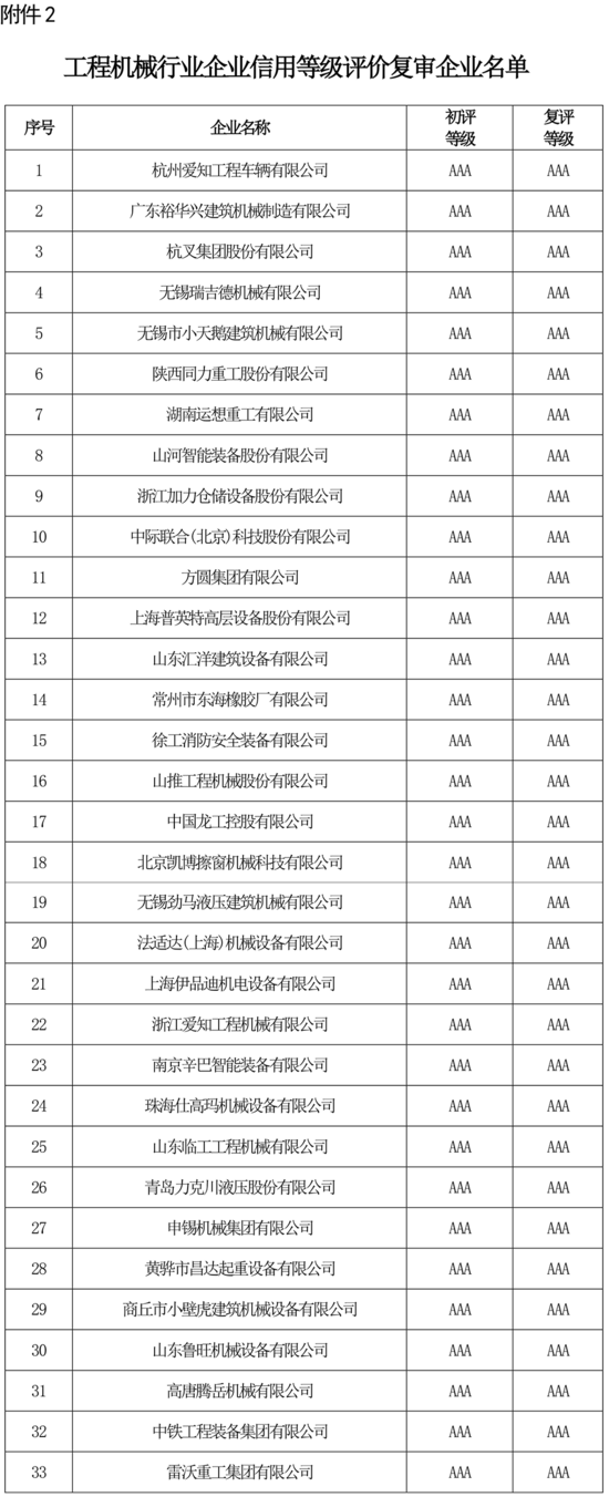 2.工程機(jī)械行業(yè)企業(yè)信用等級(jí)評(píng)價(jià)復(fù)審企業(yè)名單