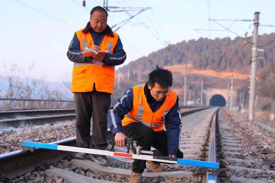 侯月鐵路穿行于太行山深處,端氏線路車間就坐落于此。第一次現(xiàn)場作業(yè),劉誼天便領(lǐng)教了山里的冷。零下十幾攝氏度的天氣里,他僅戴著一雙毛線手套,手指很快便凍得發(fā)麻。