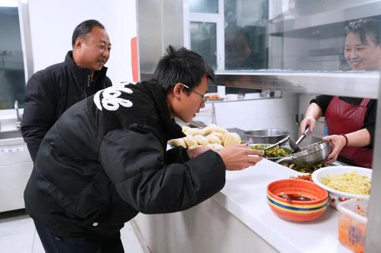 一次在食堂,師傅問他:“要不要加點(diǎn)‘調(diào)貨’?”
