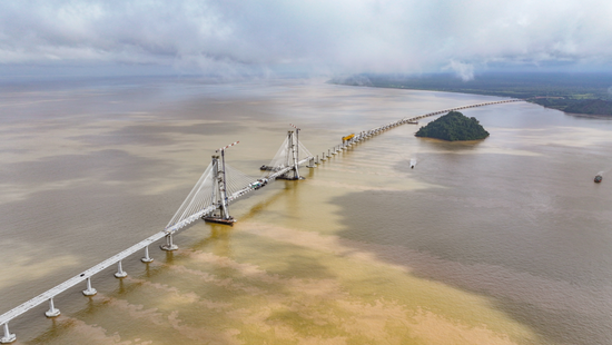 “以前漲潮時坐渡輪,船晃得厲害,去對岸拉貨或者豐收節(jié)的時候走親戚都要看天吃飯。等這座橋通了,日子肯定不一樣了!”
