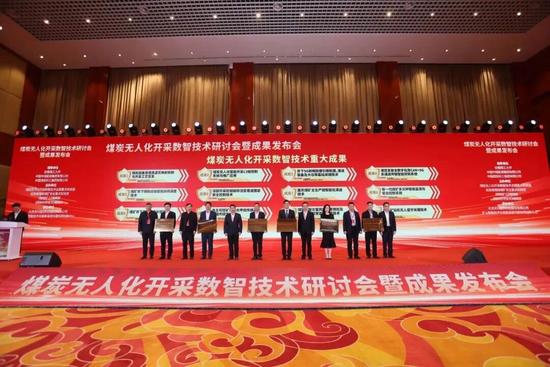 會議發(fā)布了煤機裝備高保真虛實映射機制與開采工藝變革,煤炭無人化智能開采L3級控制系統(tǒng)與推廣應(yīng)用、井下5G射頻防爆引燃機理與測試裝備及大功率基站關(guān)鍵技術(shù)、液壓支架全數(shù)字化雙CAN+5G多通道傳輸智能控制系統(tǒng)、煤礦井下輔助運輸智能協(xié)同調(diào)度技術(shù)、深部開采軟弱破碎流變巷道圍巖安全控制技術(shù)、露天煤礦主生產(chǎn)鏈智能化演進技術(shù)、新一代煤礦多災(zāi)種智能監(jiān)測與安全控制系統(tǒng)、煤礦井下星網(wǎng)構(gòu)建關(guān)鍵技術(shù)、自主可控礦用激光甲烷傳感芯片及器件、煤礦瓦斯災(zāi)害風(fēng)險隱患預(yù)控及智能保障監(jiān)管監(jiān)察成套技術(shù)、露天礦鉆機無人值守關(guān)鍵技術(shù)等12項煤炭無人化開采數(shù)智技術(shù)重大成果,舉行了煤炭無人化開采數(shù)智技術(shù)重大成果頒獎儀式。