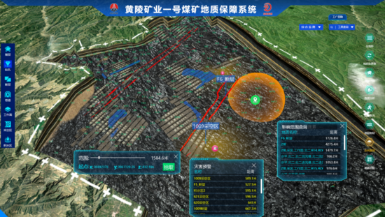 井下環(huán)境復(fù)雜,地質(zhì)建模精度達不到地面衛(wèi)星導(dǎo)航的地圖精度,無法充分滿足智能采掘、災(zāi)害治理等的地質(zhì)數(shù)據(jù)要求,同時地質(zhì)信息與采掘工程數(shù)據(jù)的融合聯(lián)動技術(shù)尚不成熟,導(dǎo)致透明地質(zhì)不太透明,制約著其他智能化系統(tǒng)的效能發(fā)揮;此外,目前以UWB技術(shù)為代表的定位受限于井下復(fù)雜環(huán)境,存在定位盲區(qū),造成導(dǎo)航定位系統(tǒng)不精準。地質(zhì)保障系統(tǒng)界面如圖9所示。