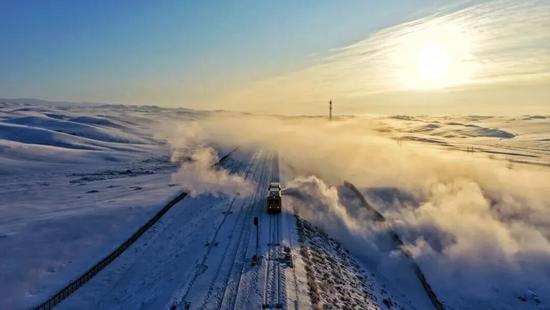 鋼鐵巨龍駛?cè)?/span>銀裝素裹的天地,邂逅城鎮(zhèn)、遠(yuǎn)山。王心 攝