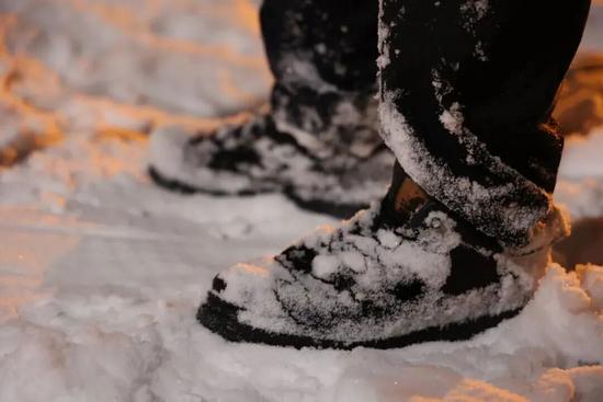 南寧車輛段“掃雪除冰突擊隊(duì)”北上開展掃雪除冰作業(yè)。作業(yè)結(jié)束,他們的鞋子已被雪覆蓋。趙詩(shī)霖 攝