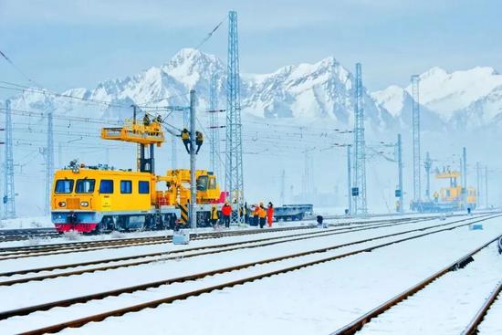 GCX-1000K型軌道除雪車在阿準(zhǔn)鐵路上作業(yè)。擺風(fēng)亮 攝