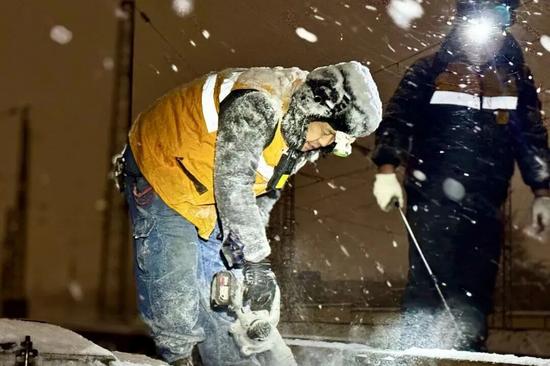 爭(zhēng)分奪秒地清掃積雪,鏟除堅(jiān)冰