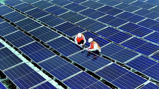 電力分公司運維人員檢查光伏板