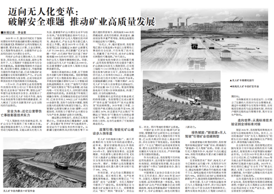 中國礦業(yè)大學(北京)能源與礦業(yè)學院、智慧露天礦山研究中心主任趙紅澤指出,我國礦區(qū)無人駕駛歷經(jīng)十年發(fā)展,已從技術測試階段邁入商業(yè)化階段,并在全球處于領先地位。在政策推動下,“十五五”期間行業(yè)將迎來更快發(fā)展,需在全流程數(shù)字化、標準體系構建、關鍵技術與復雜工況攻關、產(chǎn)學研用融合等方面協(xié)同推進。