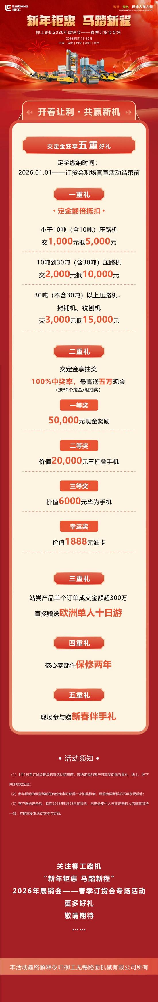 鐵甲工程機(jī)械網(wǎng)> 工程機(jī)械資訊> 行業(yè) > 新年鉅惠 馬踏新程 | 2026年春季訂貨會來襲——交定金狂享五重好禮!