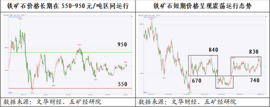 :鐵礦石價格長期在550-950噸區(qū)間運行,短期價格呈現(xiàn)震蕩運行態(tài)勢