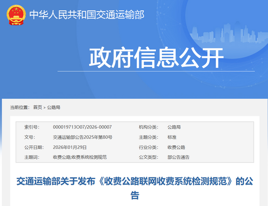 現(xiàn)發(fā)布《收費(fèi)公路聯(lián)網(wǎng)收費(fèi)系統(tǒng)檢測(cè)規(guī)范》(JTG/T 6311-2025),作為公路工程推薦性行業(yè)標(biāo)準(zhǔn),自2026年4月1日起施行。