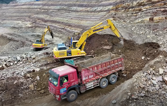 PC550LC 與 PC330 搭配,主要負(fù)責(zé)主石方開挖與裝車;